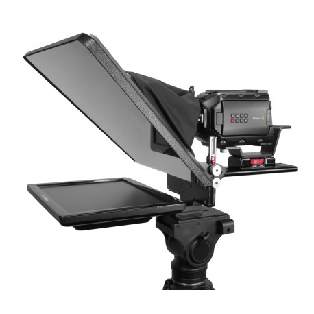 Le téléprompteur PROLINE PLUS est complètement assemblé et prêts à l’emploi. Ajoutez simplement votre caméra et connectez-vous à votre trépied. Lorsque vous avez terminé, le séparateur de faisceau se plie à plat pour le mettre en off.